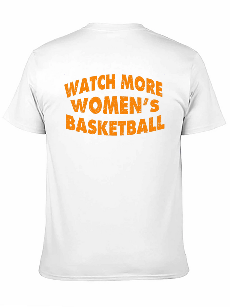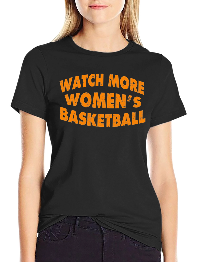 Show your support for women's basketball with this stylish black t-shirt. The bold orange text, "WATCH MORE WOMEN'S BASKETBALL" makes a statement, perfect for wearing to games, practices, or casual outings. Made from a comfortable, breathable fabric, this tee is designed for all-day wear. The classic fit ensures a relaxed and flattering silhouette on any body type. Whether you're a player, a coach, or simply a fan, this t-shirt is a great way to promote and celebrate women's sports. It's a must-have addition to any basketball enthusiast's wardrobe. Grab yours now and let your passion shine!