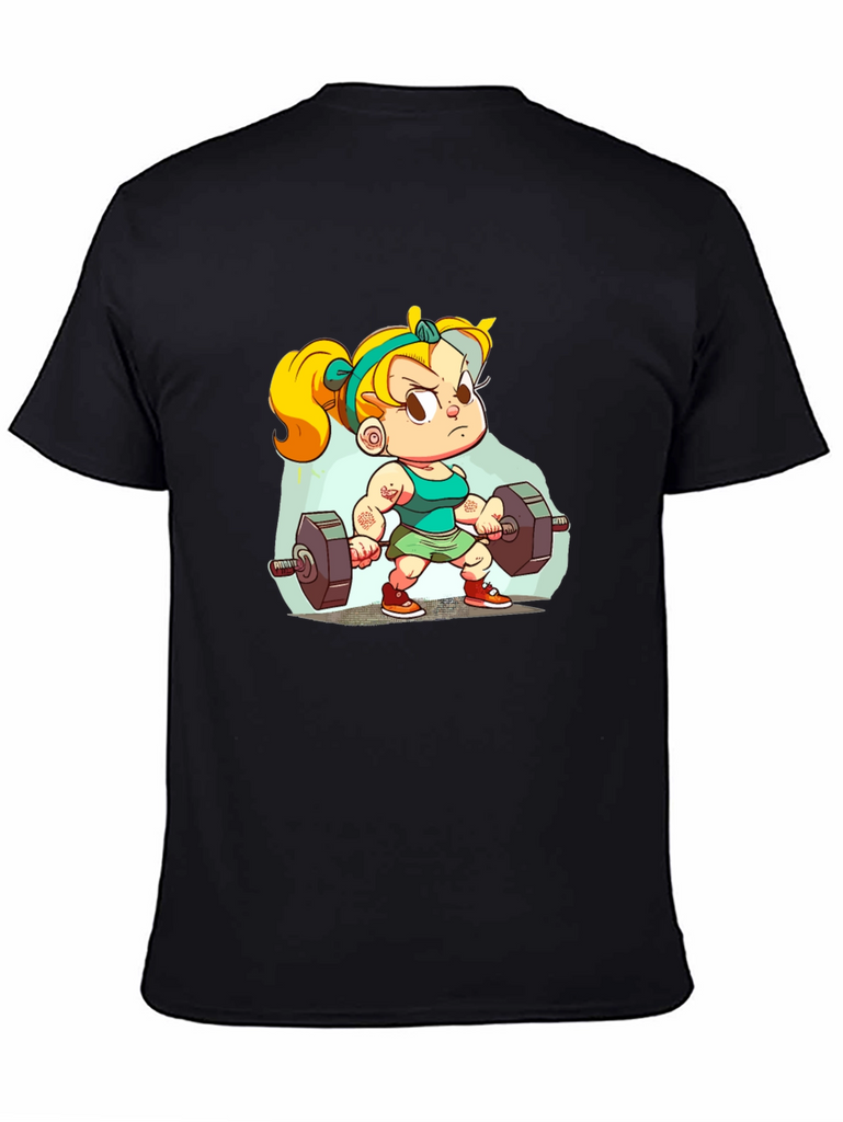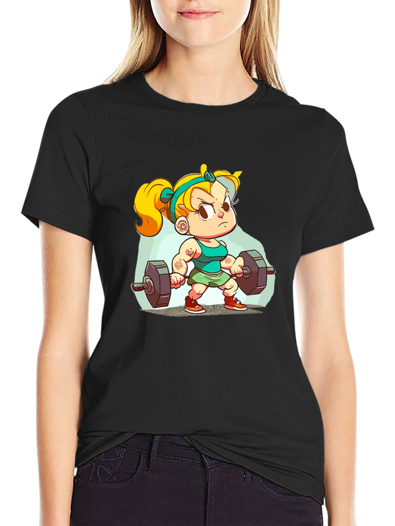 Show off your love for fitness with this unique t-shirt! Featuring a cartoon girl weightlifter design, this tee is perfect for gym enthusiasts and those who appreciate a humorous twist on workout gear. The design is eye-catching and fun, set against a classic black t-shirt, making it easy to pair with any casual outfit. Made with comfortable materials, this shirt is great for everyday wear, whether you're hitting the gym or just hanging out. A great way to express your personality and passion for weightlifting!