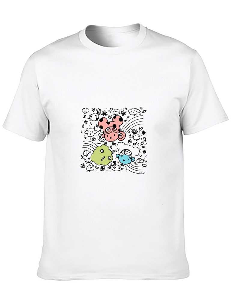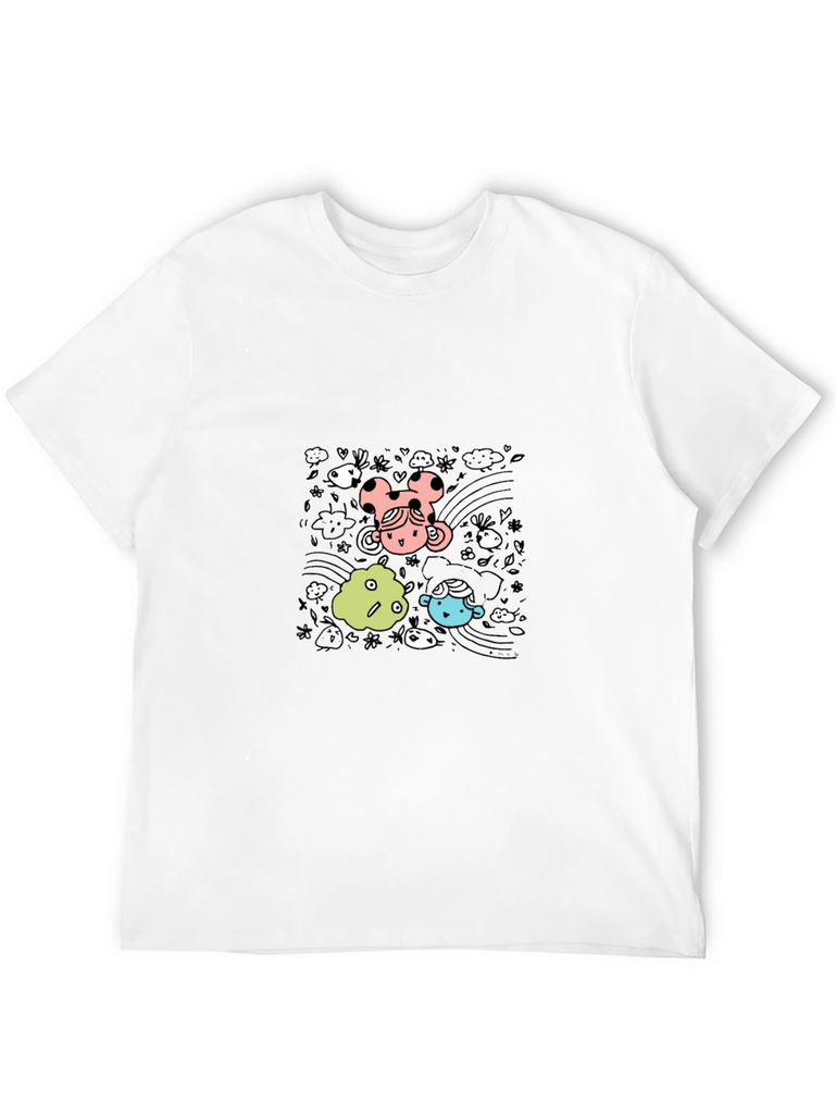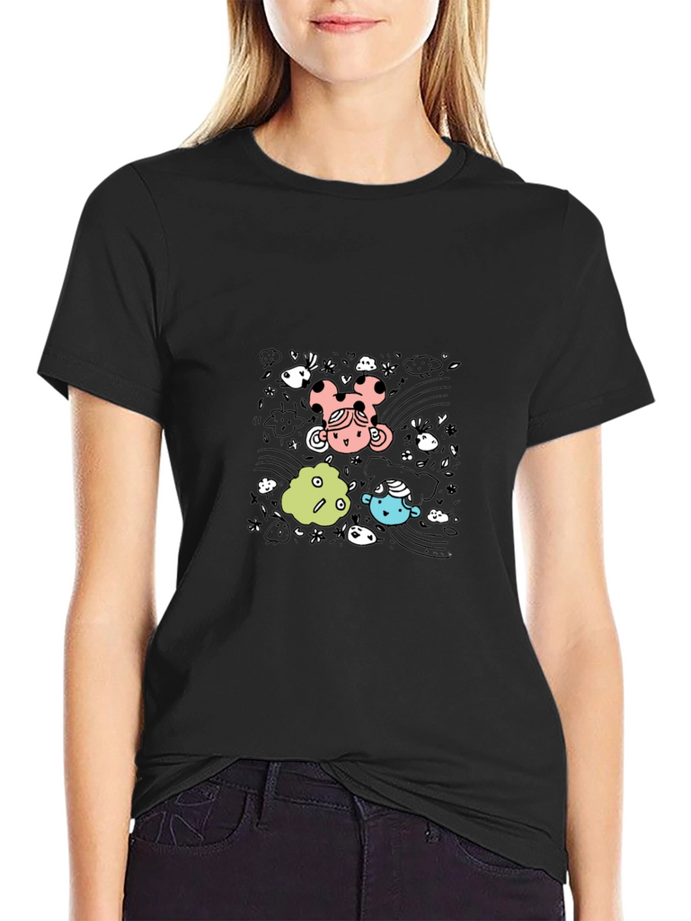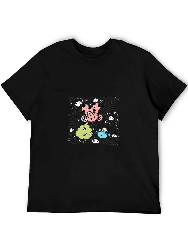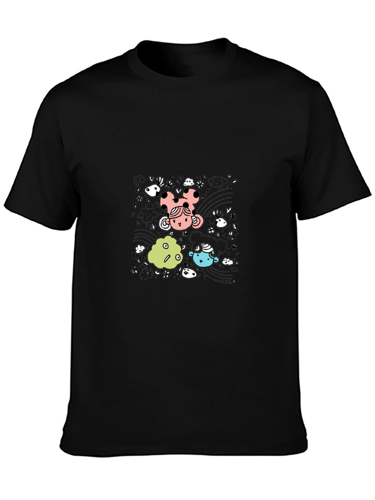 Express your fun side with this eye-catching black t-shirt. Featuring a playful cartoon graphic with colorful characters and whimsical details, this tee is sure to turn heads. Made from comfortable material, it's perfect for casual wear. Dress it up with jeans or down with sweats, this versatile shirt is ideal for everyday style. Grab yours now to add some fun to your wardrobe!