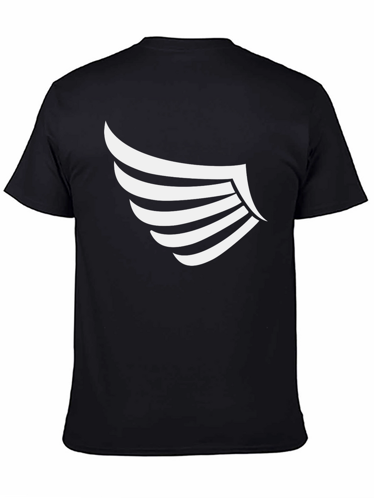 Elevate your casual style with this striking black t-shirt featuring a bold wing graphic. The crisp white design contrasts beautifully against the dark fabric, creating a visually appealing statement piece. Made from a soft, breathable material, this tee offers all-day comfort and a flattering fit. Perfect for everyday wear, concerts, or expressing your unique style. Pair it with jeans or shorts for a cool, laid-back look. This tee is a must-have addition to any wardrobe, blending comfort and eye-catching design.