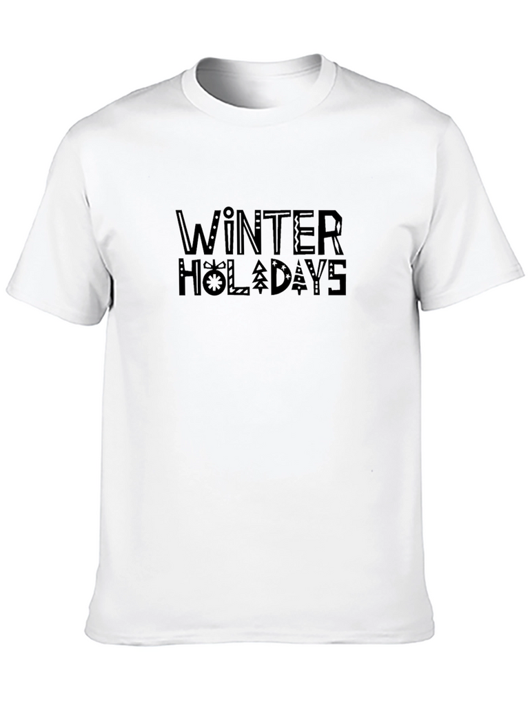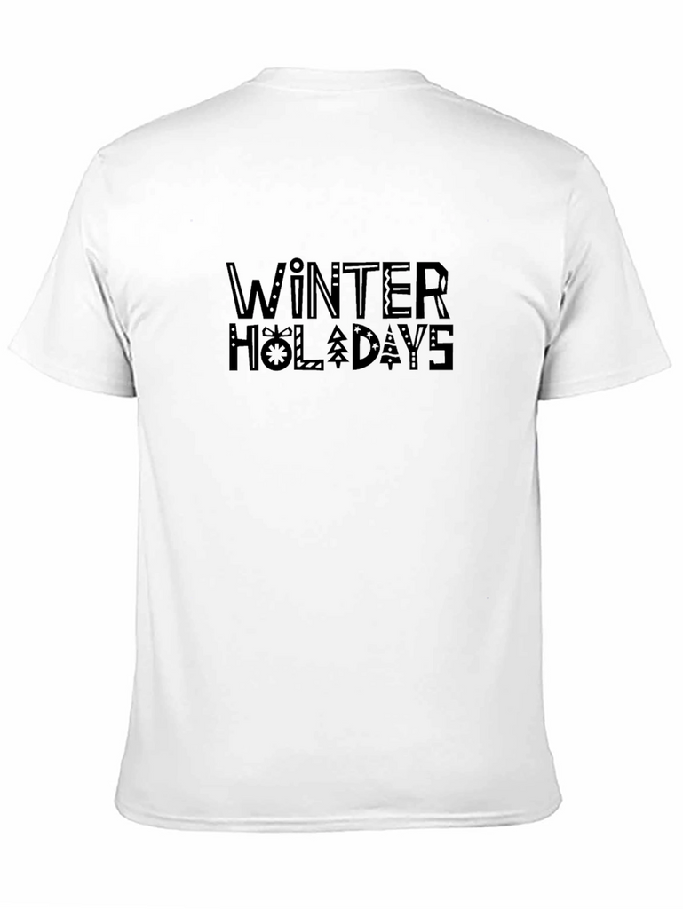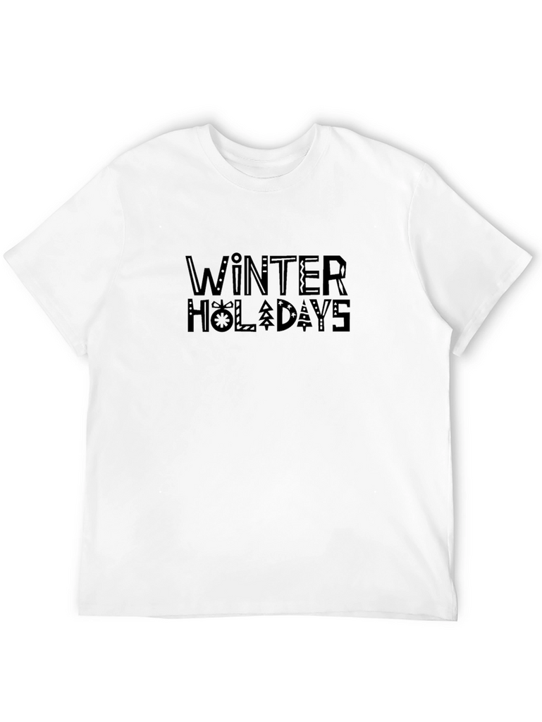 Embrace the festive season with this stylish black t-shirt featuring a unique "Winter Holidays" graphic. The design incorporates holiday-themed elements, creating a playful and eye-catching look. Crafted from comfortable material, this tee offers a relaxed fit for all-day wear. Perfect for casual outings, holiday gatherings, or simply expressing your love for the winter season. Pair it with jeans, leggings, or your favorite bottoms for a versatile and festive outfit. Show off your holiday spirit in comfort and style with this must-have graphic tee.