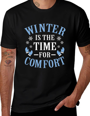 Embrace the winter season with this stylish black T-shirt. The shirt features a whimsical design of an owl perched on a branch, adorned with festive ornaments and snowflakes. "Winter" is artistically displayed above the owl, completing the theme. The soft fabric ensures all-day comfort, making it perfect for casual outings, holiday gatherings, or cozy nights in. Show off your love for the season with this unique and eye-catching tee, a great conversation starter and a must-have addition to your winter wardrobe. Get yours today!