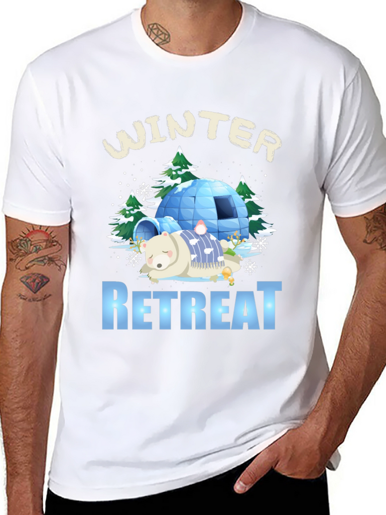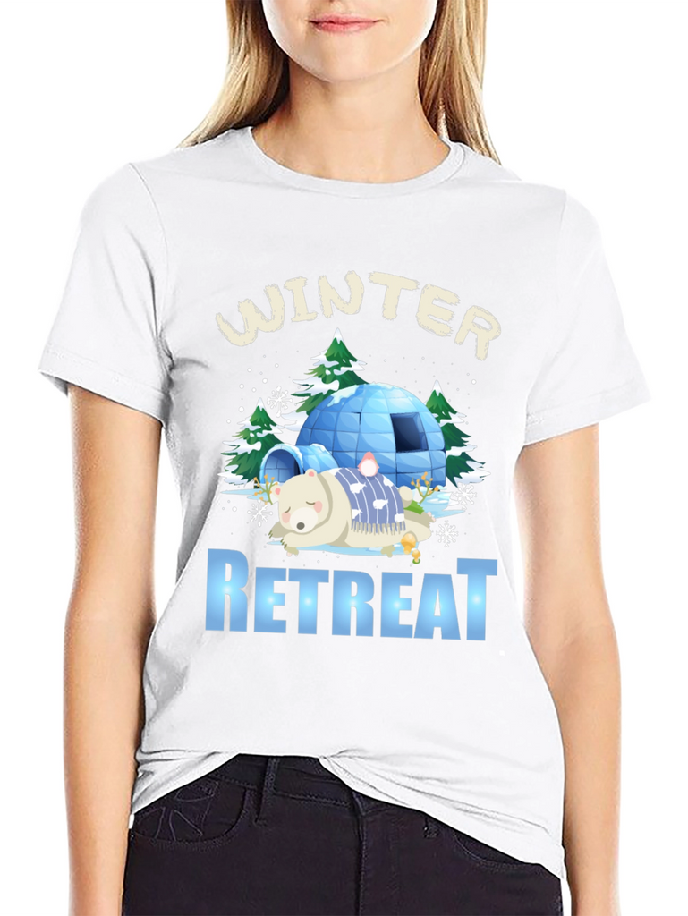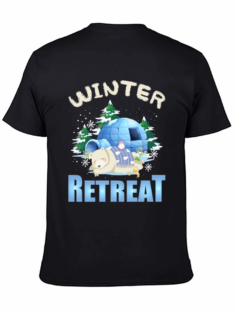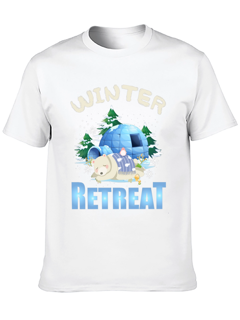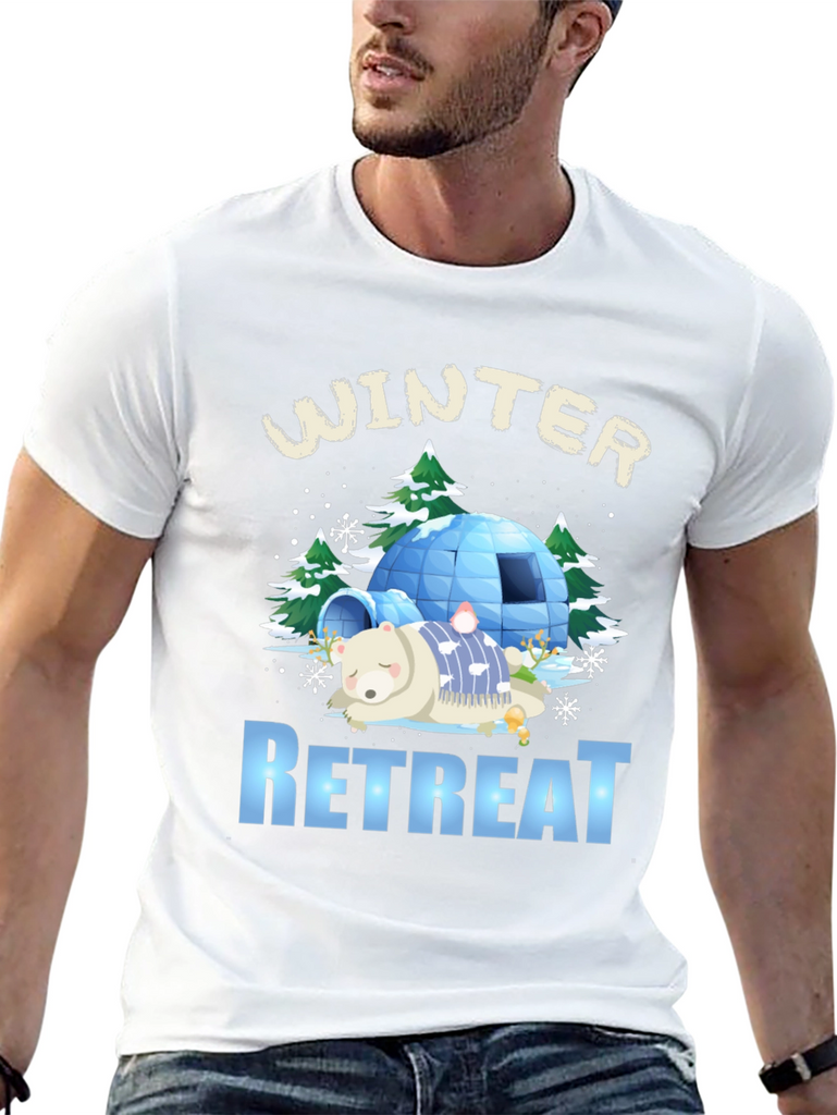 Stay cozy this winter in our Winter Retreat Graphic T-Shirt. Featuring a charming design with a sleepy polar bear, igloo, and snowy trees, this tee brings the serenity of a winter getaway to your wardrobe. The blue and white details pop against the black backdrop, making it a versatile piece. Crafted from a soft, breathable fabric, this t-shirt offers all-day comfort. Ideal for casual outings, lounging at home, or as a thoughtful gift for winter enthusiasts. Embrace the cold season in style and comfort.