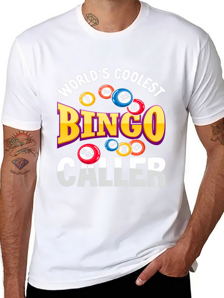 Show off your bingo calling skills with this fun and stylish t-shirt! This black tee features a vibrant graphic design with the words "World's Coolest" above the word "BINGO" and "CALLER" below, all in a playful, eye-catching font. Colorful bingo balls surround the text, adding to the lighthearted feel. Made from a soft, comfortable fabric, this t-shirt is perfect for wearing to bingo night, casual outings, or just lounging around the house. It's a great conversation starter and a fun way to express your love for the game. Get yours today and let everyone know you're the coolest bingo caller around!