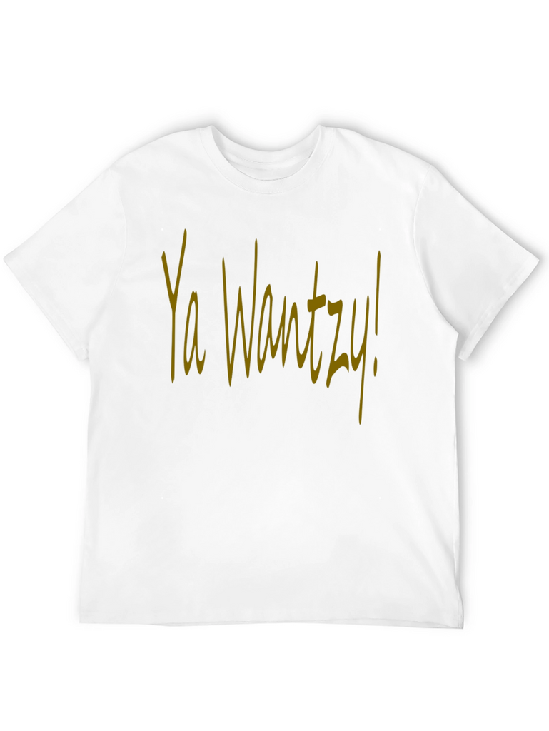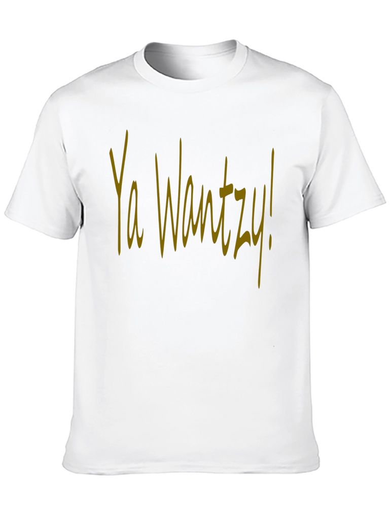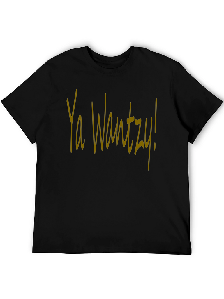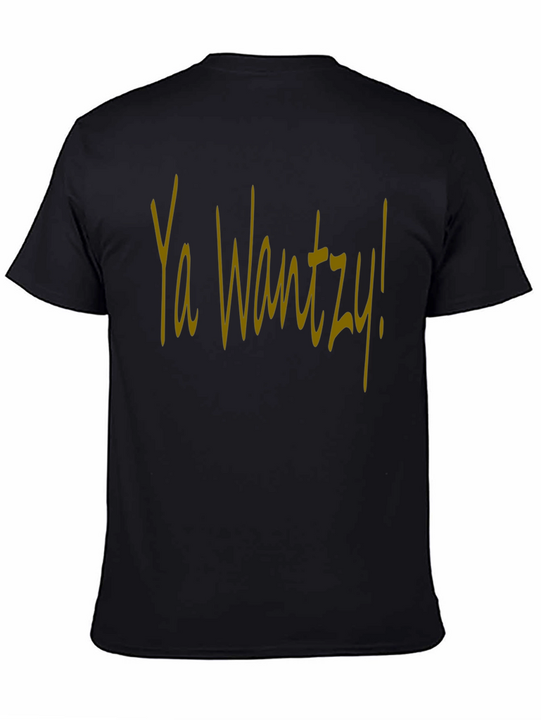 This stylish black t-shirt features the phrase "Ya Wantzy!" in a distinct yellow script across the chest. The shirt appears to be made from a soft, comfortable cotton blend, perfect for casual wear. The design is bold and eye-catching, making it a fun choice for expressing your personality. Ideal for everyday outings, social gatherings, or just relaxing at home, this tee offers both comfort and a unique statement. Upgrade your wardrobe with this must-have piece!