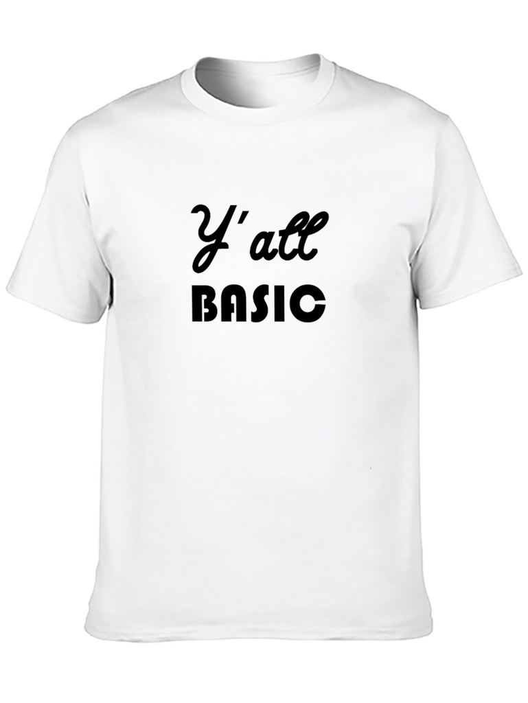 This stylish black t-shirt features a bold "Y'all BASIC" design, making it a statement piece for casual wear. The shirt appears to be made from a soft and comfortable fabric, suitable for everyday use. Its classic fit and short sleeves offer a relaxed and versatile style that can be paired with jeans, shorts, or layered under a jacket. The dark color provides a sleek and modern look. Perfect for those who want to add a touch of humor and edge to their wardrobe. A great addition to any casual outfit!