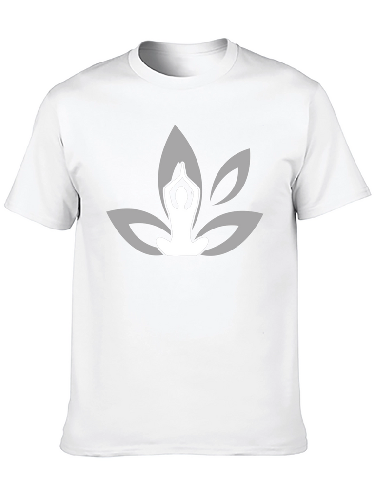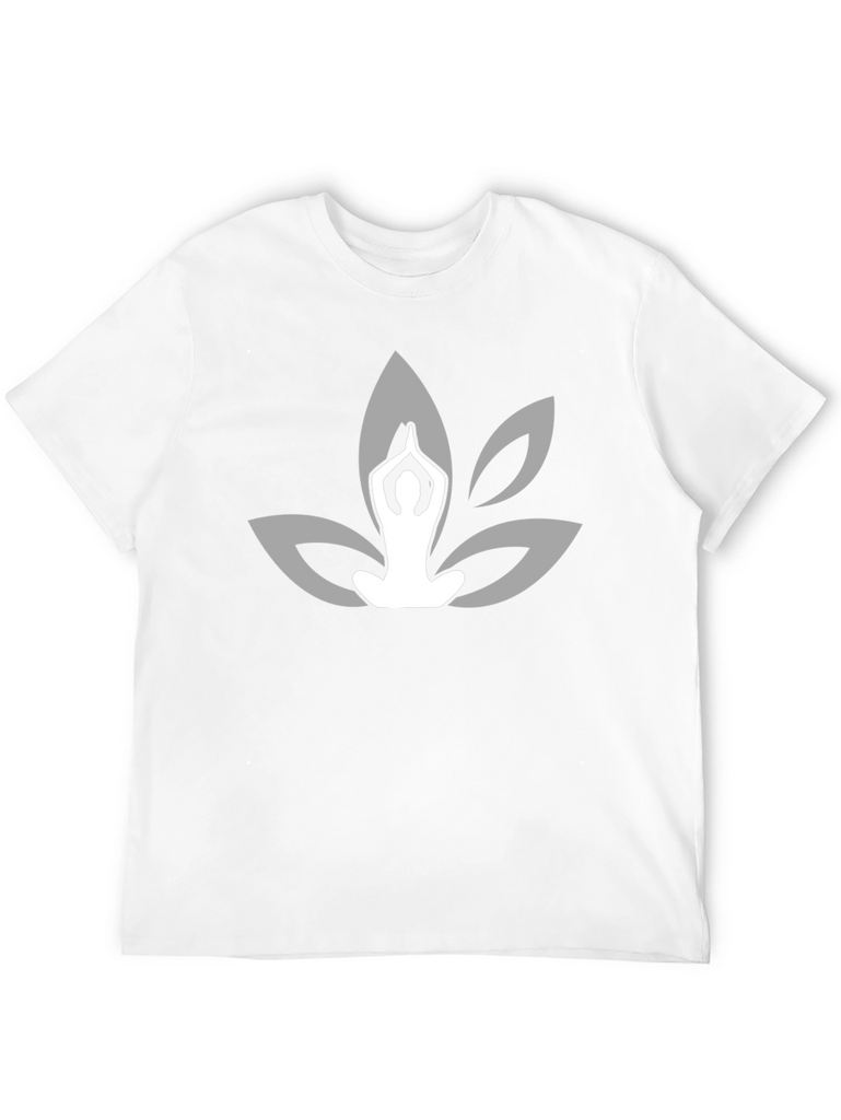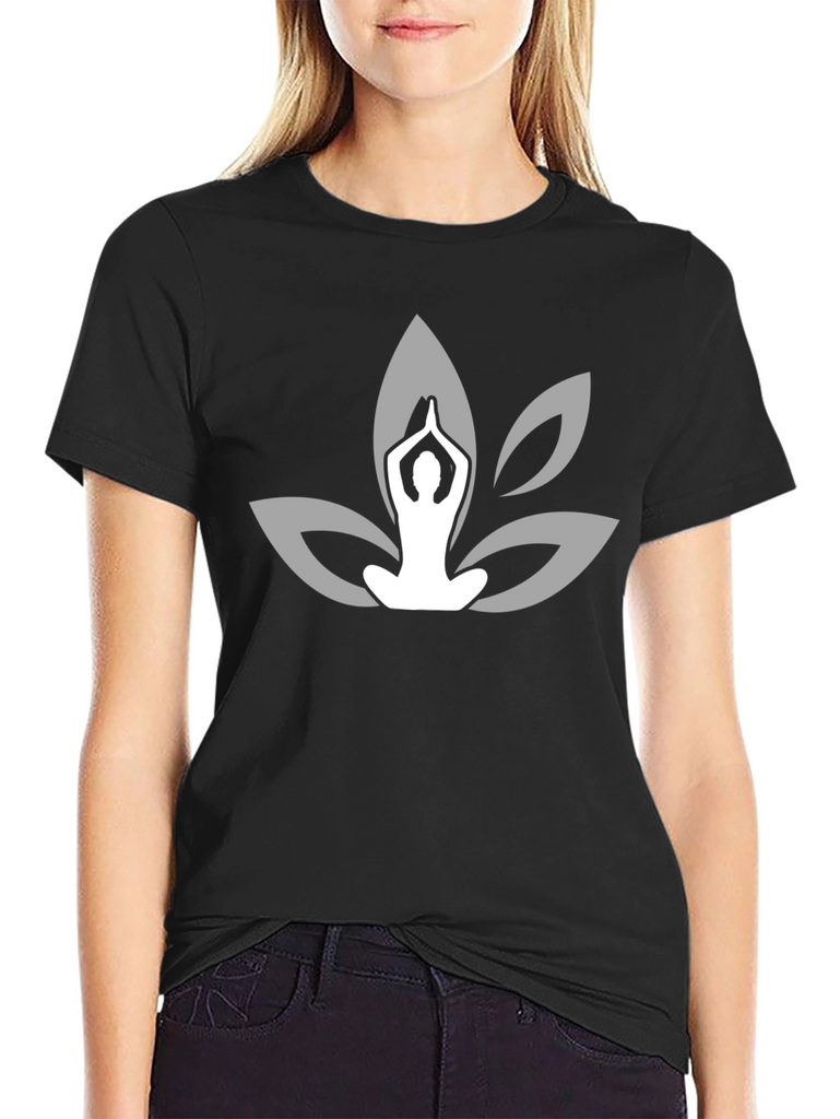 Find your inner peace with this stylish black t-shirt featuring a yoga-inspired lotus flower design. The serene graphic shows a person in a meditation pose set against the backdrop of stylized lotus petals in a complementary shade. Crafted from what appears to be a soft, comfortable fabric, this tee offers a relaxed fit perfect for everyday wear or your next yoga session. The elegant design makes it a versatile piece that can be dressed up or down. A must-have for yoga enthusiasts and anyone seeking a touch of tranquility in their wardrobe. Add this unique yoga-themed t-shirt to your collection today!