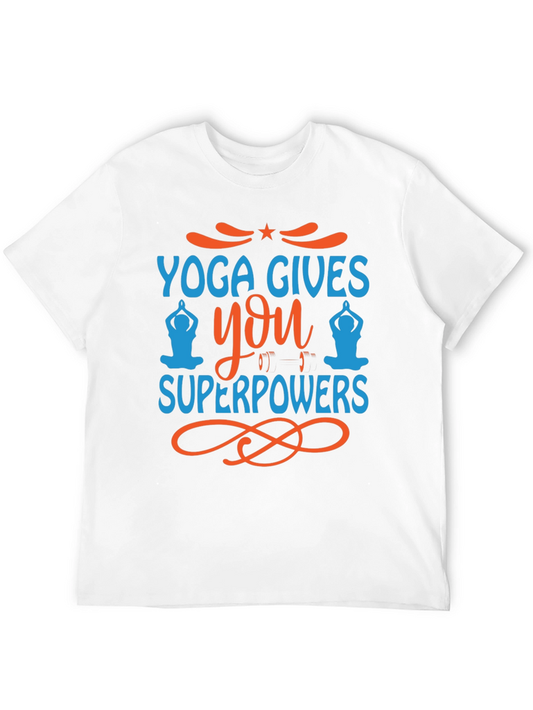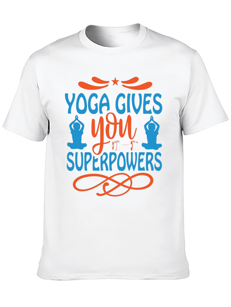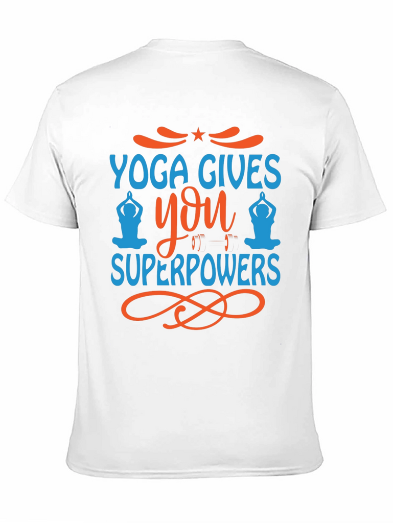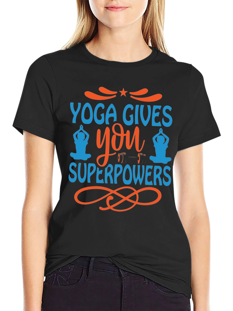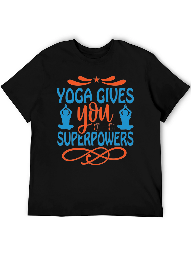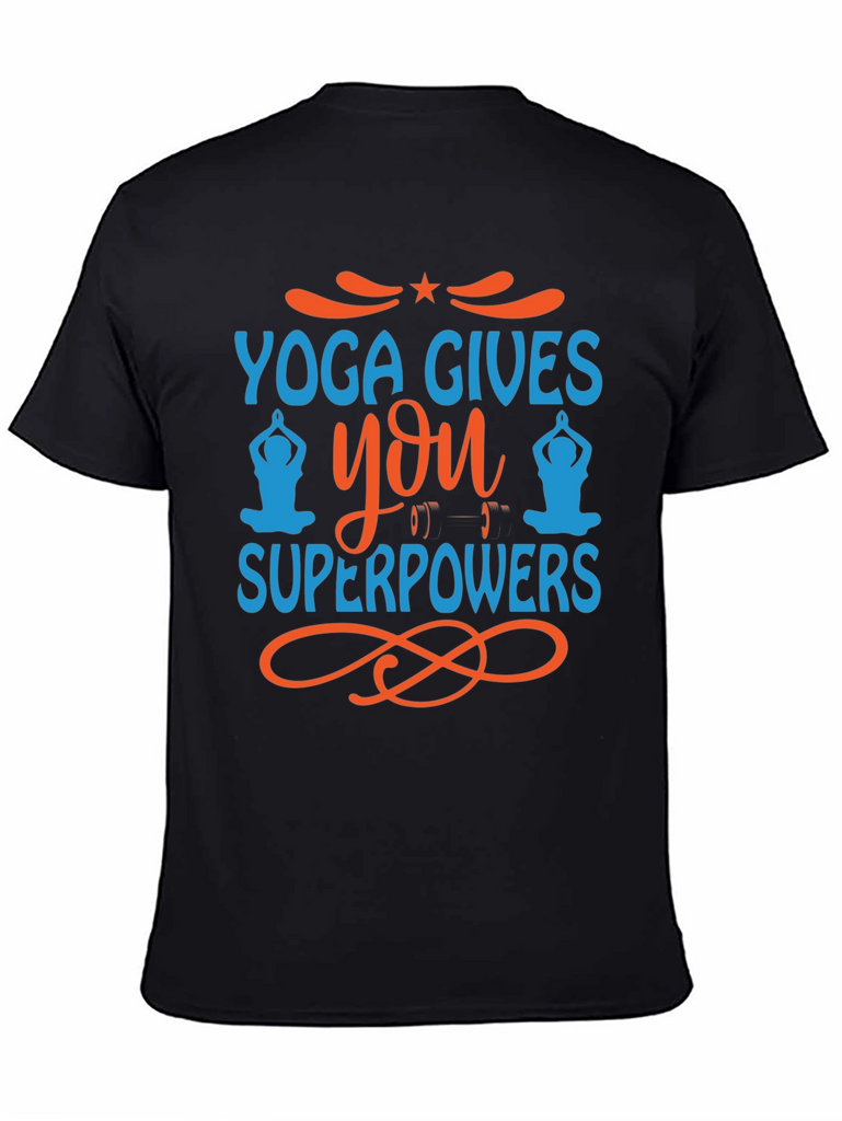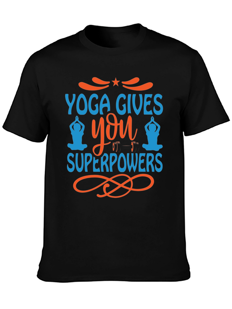 Unleash your inner strength with this stylish black t-shirt featuring a vibrant "Yoga Gives You Superpowers" design. The print incorporates yoga poses into the empowering message. Made from comfortable fabric, this tee is perfect for yoga enthusiasts and anyone seeking a motivational boost. Wear it to your next yoga class, gym session, or as a daily reminder of your potential. This shirt makes a great gift for the yogi in your life. Embrace the power of yoga and show off your positive vibes with this unique t-shirt.
