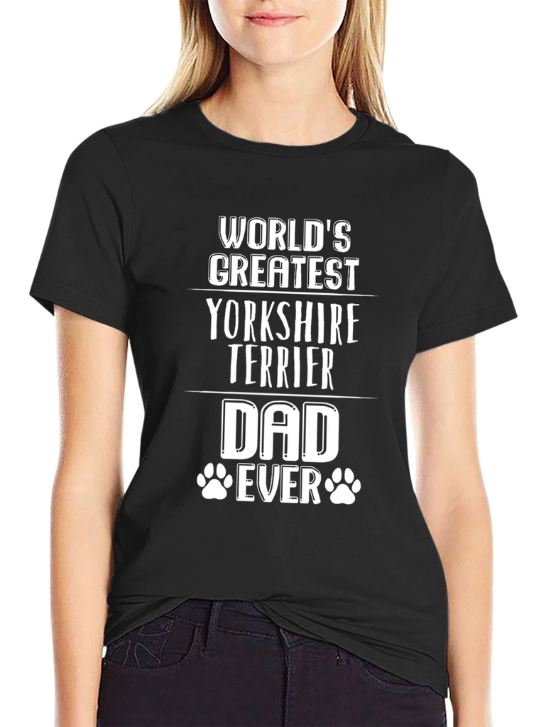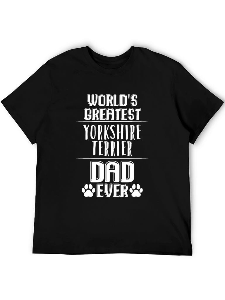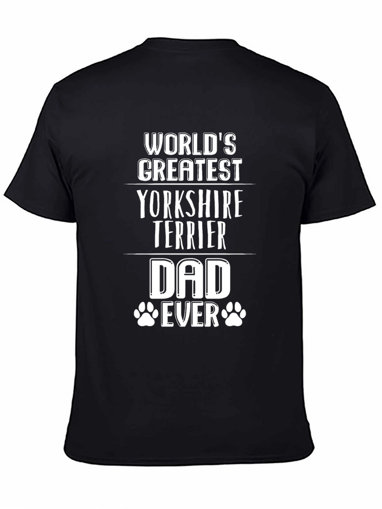 Celebrate your love for your furry friend with this "World's Greatest Yorkshire Terrier Dad Ever" T-shirt. Crafted from a soft, breathable black fabric, this tee offers both comfort and style. The bold white text makes a statement, while the paw print accents add a touch of whimsy. Perfect for casual wear, dog walks, or showing off your Yorkshire Terrier pride, this shirt is a must-have for any dog dad's wardrobe. Grab yours today and let the world know you're the ultimate Yorkshire Terrier enthusiast!