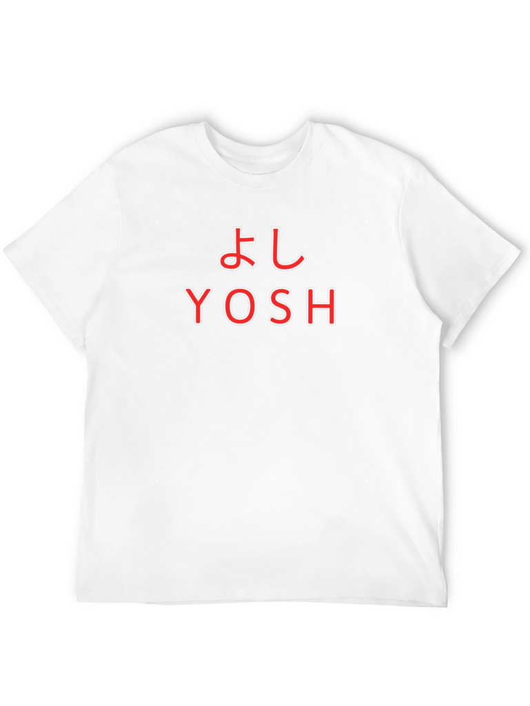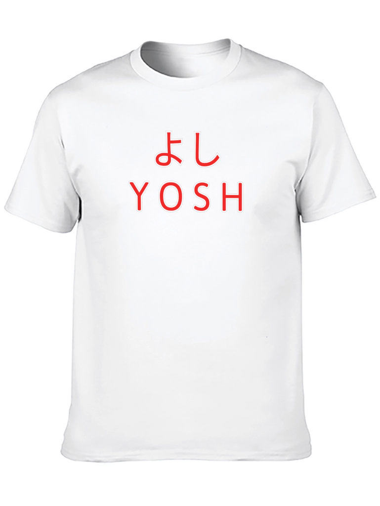 Show off your unique style with this eye-catching black t-shirt featuring the word "YOSH" alongside Japanese characters. The design is printed in a bold red outline, creating a striking contrast against the black background. Made from what appears to be a soft and breathable fabric, this tee offers both comfort and style. Perfect for casual wear, it can be paired with jeans, shorts, or joggers for a relaxed yet fashionable look. Whether you're a fan of Japanese culture or simply appreciate cool graphic tees, this shirt is sure to become a favorite in your wardrobe. Embrace individuality and express yourself with this trendy piece!