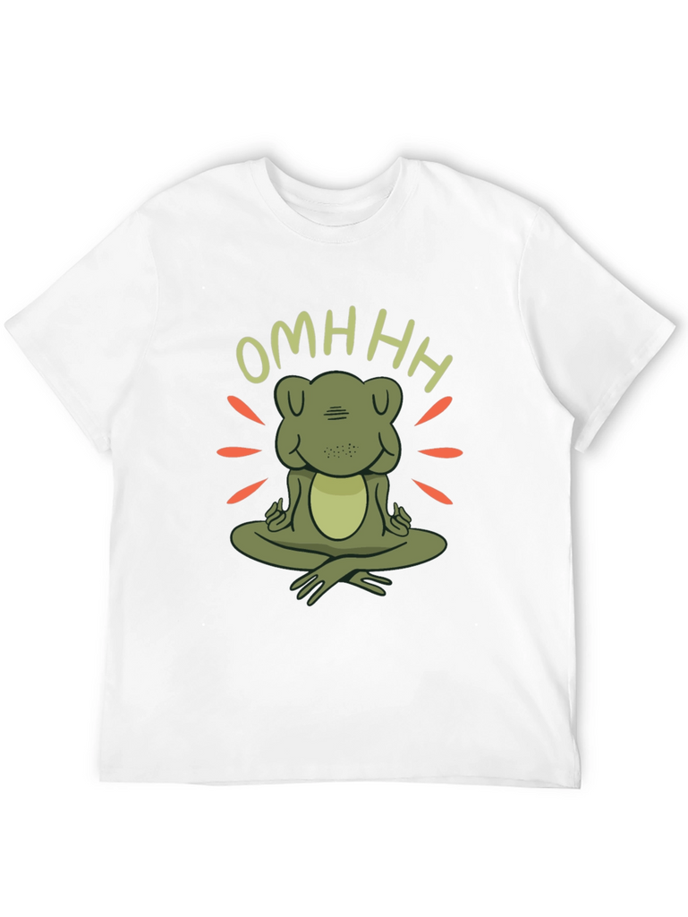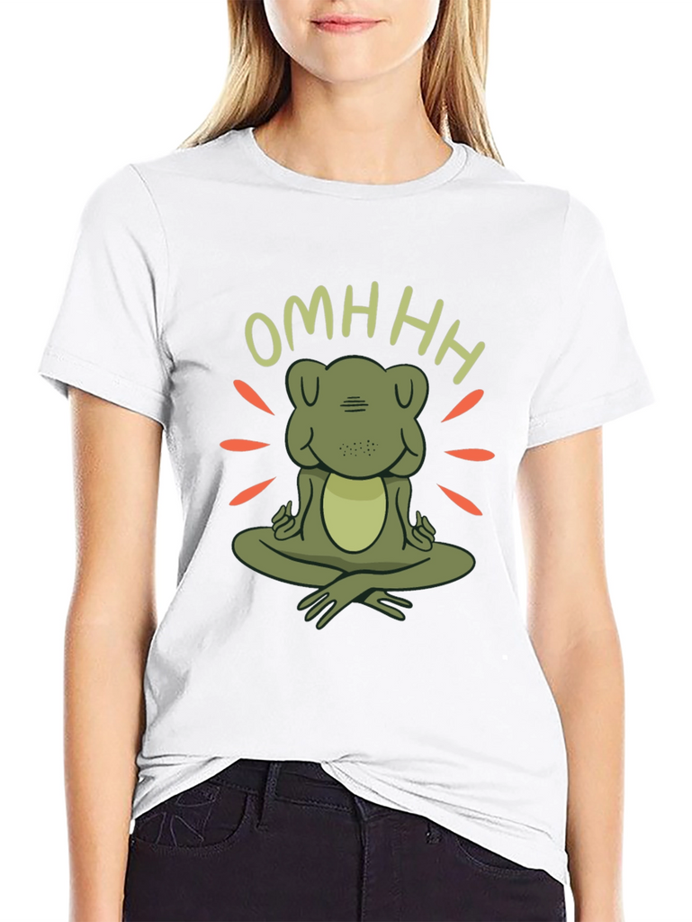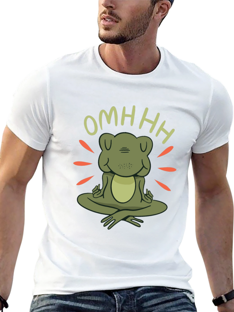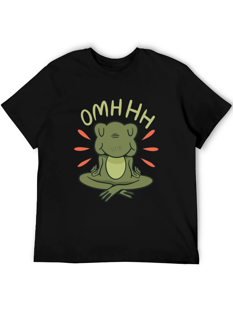 Find your inner peace with this unique zen frog t-shirt. Featuring a charming cartoon frog in a meditative pose with the word "OMHHH" above, this t-shirt is sure to bring a touch of whimsy and tranquility to your wardrobe. The design incorporates radiating lines around the frog, creating a peaceful, zen-like atmosphere. Made from comfortable, soft fabric, this black t-shirt is perfect for yoga sessions, casual outings, or simply lounging at home. Show off your love for mindfulness and adorable amphibians with this one-of-a-kind graphic tee. A great conversation starter and a perfect gift for the zen enthusiast in your life.